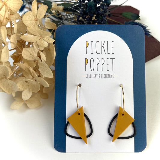 Triangle ‘Wear 3 Ways’ Earrings - Mustard and Black